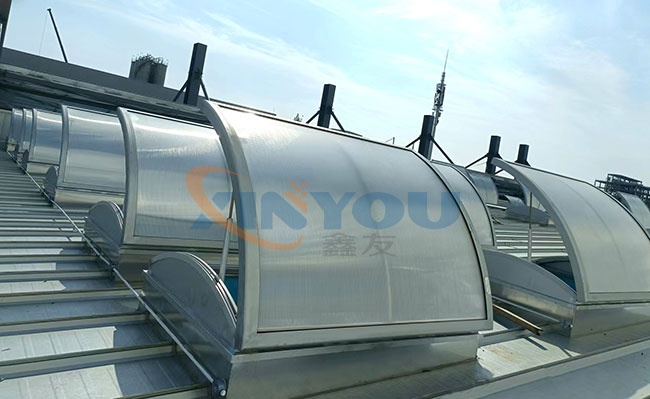 圓拱形的設(shè)計,外觀優(yōu)美、通風(fēng)排煙兼顧自然采光,開啟角度一般為30度到45度最大開啟角度為90°。